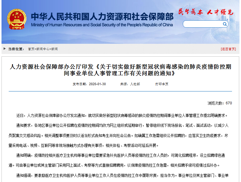 通知明確,疫情防控相關(guān)醫(yī)療衛(wèi)生機(jī)構(gòu)等事業(yè)單位需要緊急補(bǔ)充醫(yī)護(hù)人員等疫情防控工作人員的,可簡(jiǎn)化招聘程序,設(shè)立招聘綠色通道??捎墒聵I(yè)單位或其主管部門采用網(wǎng)上面試、考察等方式直接招聘聘用,以保障疫情防控工作急需,相關(guān)招聘手續(xù)可疫情過后補(bǔ)辦。
